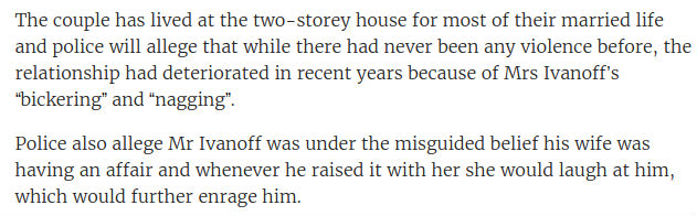 - http://www.news.com.au/national/nsw-act/crime/ben-ivanoff-allegedly-snapped-and-killed-his-elderly-wife-for-laughing-at-him/news-story/dbfa9b8935d593df34c58dad3e516796